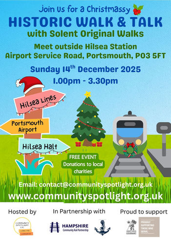 Community Spotlight are excited to have been awarded a grant from the Community Rail Partnership to hold a 1 day Creative Community Consultation event at Hilsea Station with Seekers Create CIC. The event will provide an opportunity for local residents, organisations and businesses to share ideas about ways to improve, connect and increase activities at the station. Date TBC